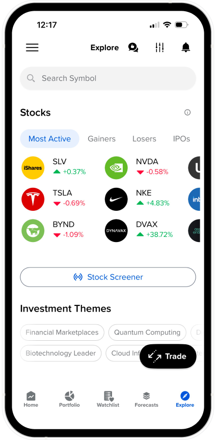 Trade 90+ stock markets worldwide, including NYSE, NASDAQ, LSE and HKSE. Access select US ETFs around the clock plus forecast contracts and options – all from your mobile device.