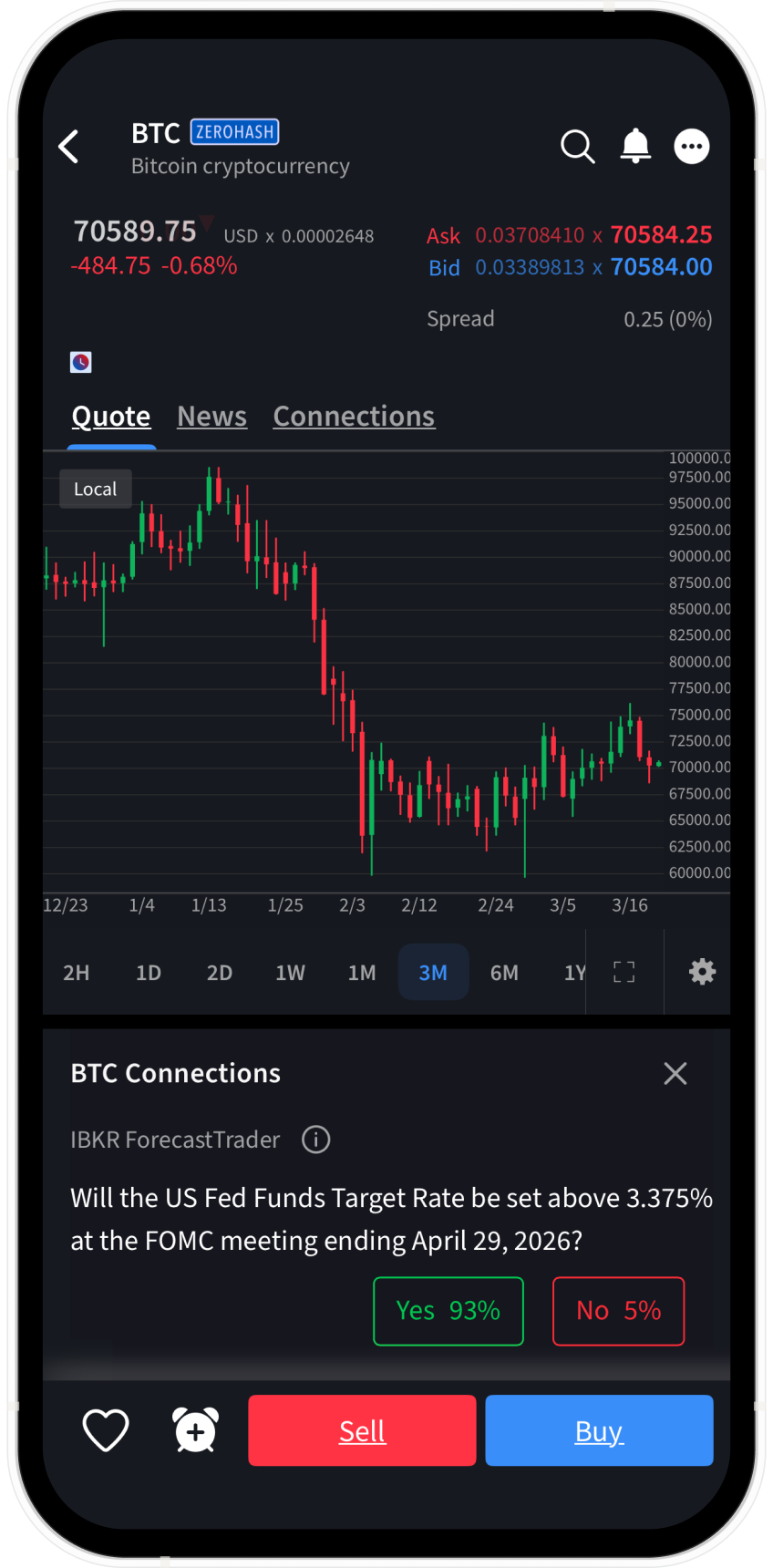 Trade crypto-assets alongside stocks, options, futures, currencies, bonds, funds, and more across 170+ global markets.