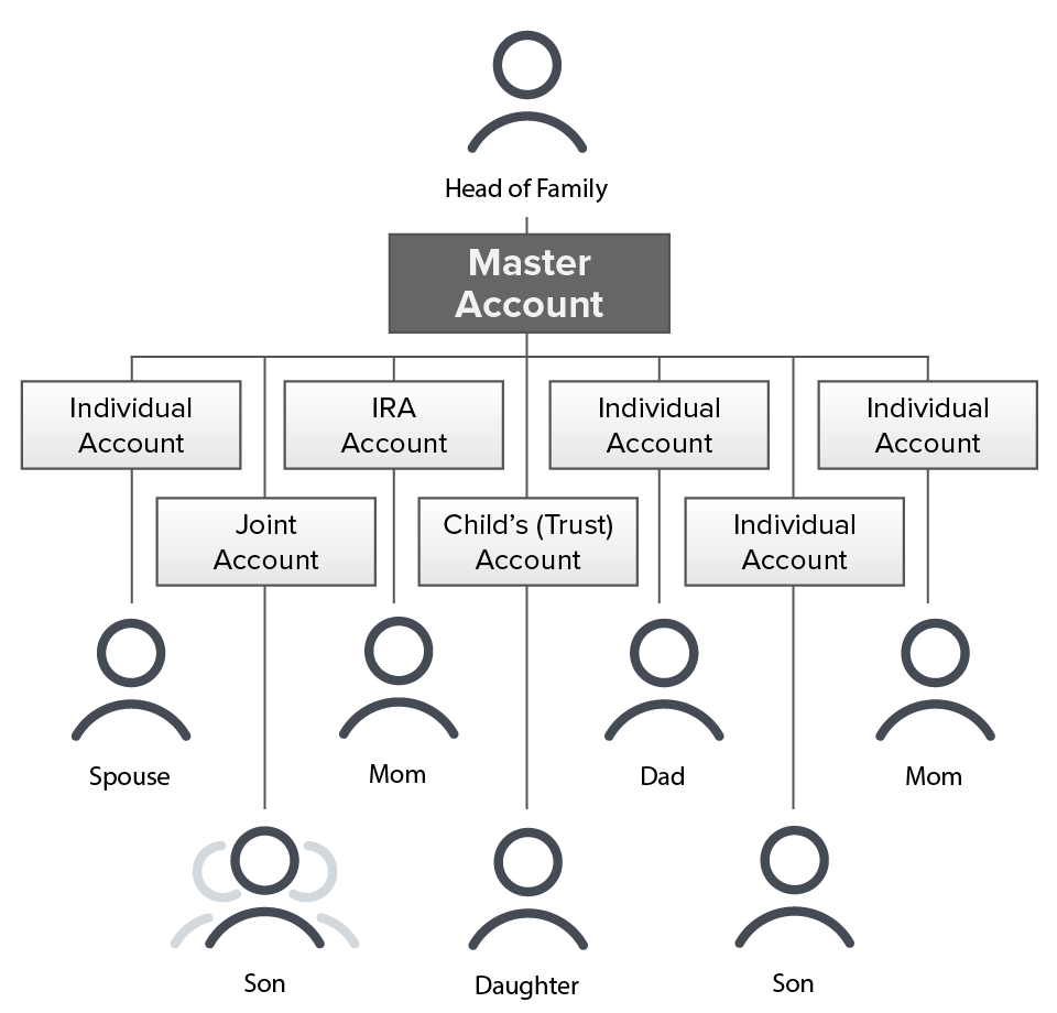 Мастер-счет с присоединенными счетами частных клиентов.